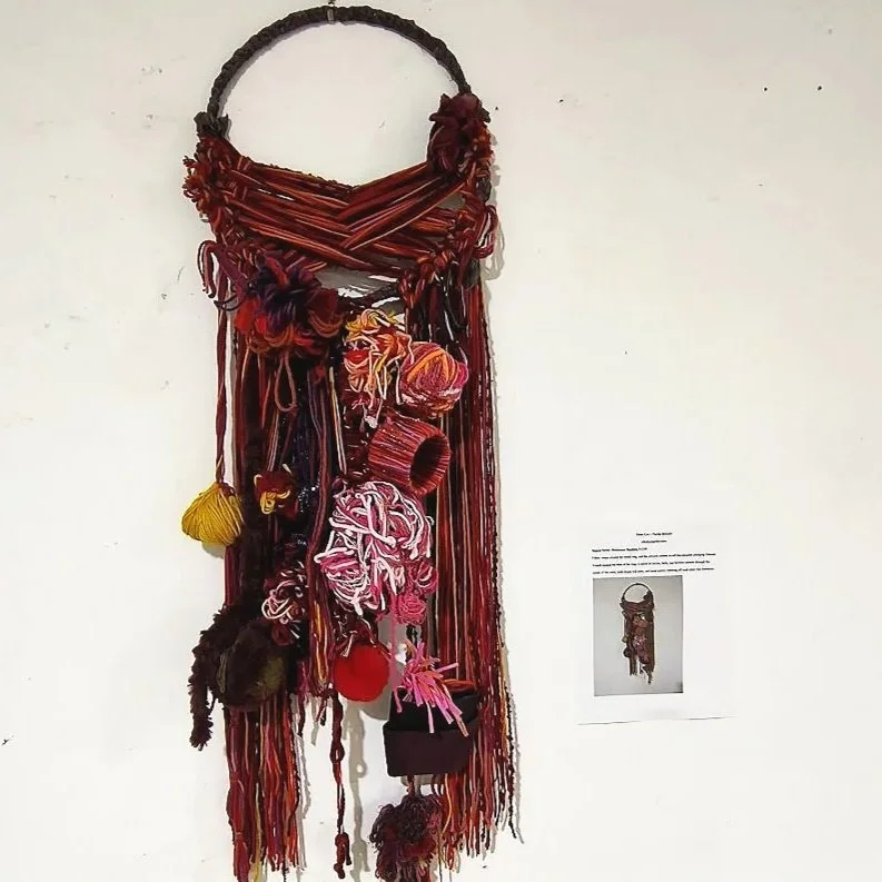 Portia Bowers is a fiber and textile artist whose work uses vibrant colors, patterns, and textures, exploring themes of femininity, the Goddess, and possibilities. Themes of transparency are represented with the use of circles, and elements that recreate the world of flowers symbolize the infinite nature of love. View her Instagram here.