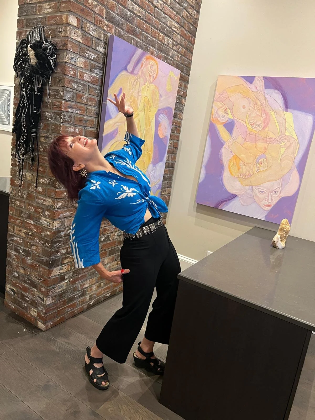 Lara Azul, the artistic identity of Britta Adler, is a multidisciplinary artist who works in painting, performance, and installation. Formerly with Artists Anonymous and GODsDOGs, she is internationally exhibited and collected. Her academic background spans painting, psychology, and dance, and her art explores complex, poetic aspects of human experience. View her website here.